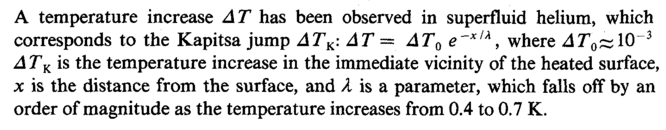 A temperature increase AT has been observed in superfluid helium, which corresponds to the Kapitsa jump ATK: AT = ATQe'xU, where 4Г0^10_3 A TK is the temperature increase in the immediate vicinity of the heated surface, χ is the distance from the surface, and Я is a parameter, which falls off by an order of magnitude as the temperature increases from 0.4 to 0.7 K.
