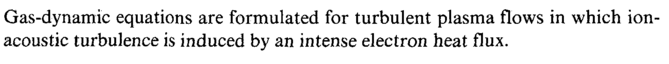 Gas-dynamic equations are formulated for turbulent plasma flows in which ion-acoustic turbulence is induced by an intense electron heat flux.