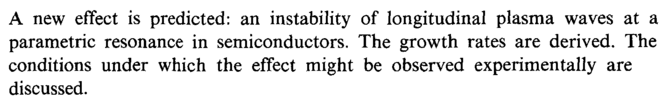 A new effect is predicted: an instability of longitudinal plasma waves at a parametric resonance in semiconductors. The growth rates are derived. The conditions under which the effect might be observed experimentally are discussed.