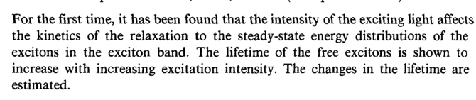For the first time, it has been found that the intensity of the exciting light affects the kinetics of the relaxation to the steady-state energy distributions of the excitons in the exciton band. The lifetime of the free excitons is shown to increase with increasing excitation intensity. The changes in the lifetime are estimated.