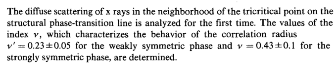 The diffuse scattering of χ rays in the neighborhood of the tricritical point on the structural phase-transition line is analyzed for the first time. The values of the index v, which characterizes the behavior of the correlation radius v' = 0.23±0.05 for the weakly symmetric phase and ν — 0.43±0.1 for the strongly symmetric phase, are determined.