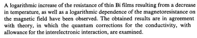 A logarithmic increase of the resistance of thin Bi films resulting from a decrease in temperature, as well as a logarithmic dependence of the magnetoresistance on the magnetic field have been observed. The obtained results are in agreement with theory, in which the quantum corrections for the conductivity, with allowance for the interelectronic interaction, are examined.