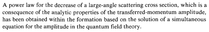 A power law for the decrease of a large-angle scattering cross section, which is a consequence of the analytic properties of the transferred-momentum amplitude, has been obtained within the formation based on the solution of a simultaneous equation for the amplitude in the quantum field theory.