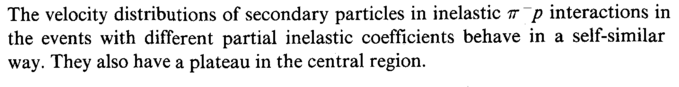 The velocity distributions of secondary particles in inelastic π ~p interactions in the events with different partial inelastic coefficients behave in a self-similar way. They also have a plateau in the central region.