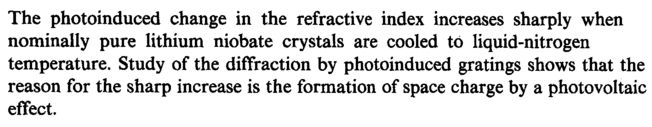 The photoinduced change in the refractive index increases sharply when nominally pure lithium niobate crystals are cooled to liquid-nitrogen temperature. Study of the diffraction by photoinduced gratings shows that the reason for the sharp increase is the formation of space charge by a photovoltaic effect.