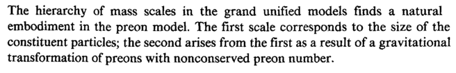 The hierarchy of mass scales in the grand unified models finds a natural embodiment in the preon model. The first scale corresponds to the size of the constituent particles; the second arises from the first as a result of a gravitational transformation of preons with nonconserved preon number.
