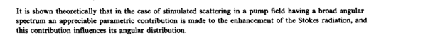 Stimulated scattering following excitation by radiation having a broad angular spectrum