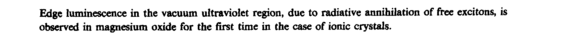 Edge luminescence in the vacuum ultraviolet region, due to radiative annihilation of free excitons, is observed in magnesium oxide for the first time in the case of ionic crystals.