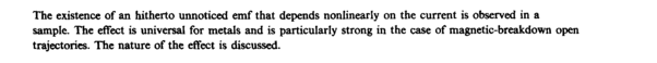 The existence of an hitherto unnoticed emf that depends nonlinearly on the current is observed in a sample. The effect is universal for metals and is particularly strong in the case of magnetic-breakdown open trajectories. The nature of the effect is discussed.