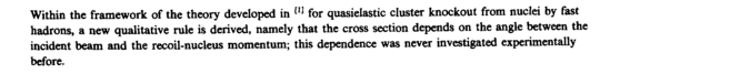 Within the framework of the theory developed in {n for quasielastic cluster knockout from nuclei by fast hadrons, a new qualitative rule is derived, namely that the cross section depends on the angle between the incident beam and the recoil-nucleus momentum; this dependence was never investigated experimentally before.