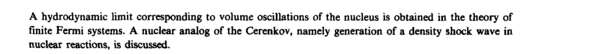 A hydrodynamic limit corresponding to volume oscillations of the nucleus is obtained in the theory of finite Fermi systems. A nuclear analog of the Cerenkov, namely generation of a density shock wave in nuclear reactions, is discussed.