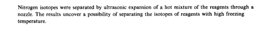 Nitrogen isotopes were separated by ultrasonic expansion of a hot mixture of the reagents through a nozzle. The results uncover a possibility of separating the isotopes of reagents with high freezing temperature.