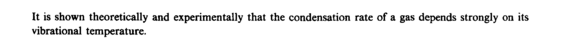 It is shown theoretically and experimentally that the condensation rate of a gas depends strongly on its vibrational temperature.