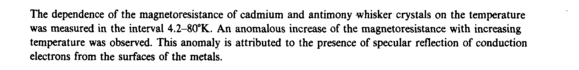 Temperature dependence of the magnetoresistance of cadmium and antimony whisker crystals