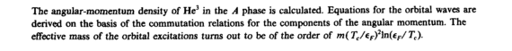 The angular-momentum density of He3 in the A phase is calculated. Equations for the orbital waves are derived on the basis of the commutation relations for the components of the angular momentum. The effective mass of the orbital excitations turns out to be of the order of m(Tc/£F)2)n(eF/Tc).