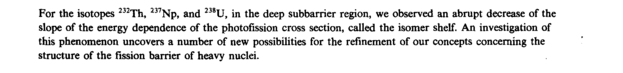 For the isotopes 232Th, 237Np, and 238U, in the deep subbarrier region, we observed an abrupt decrease of the slope of the energy dependence of the photofission cross section, called the isomer shelf. An investigation of this phenomenon uncovers a number of new possibilities for the refinement of our concepts concerning the structure of the fission barrier of heavy nuclei.