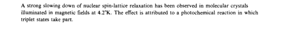 A strong slowing down of nuclear spin-lattice relaxation has been observed in molecular crystals illuminated in magnetic fields at 4.2°K. The effect is attributed to a photochemical reaction in which triplet states take part.