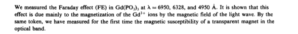 We measured the Faraday effect (FE) in Gd(P03)3 at λ = 6950, 6328, and 4950 A. It is shown that this effect is due mainly to the magnetization of the Gd3+ ions by the magnetic field of the light wave. By the same token, we have measured for the first time the magnetic susceptibility of a transparent magnet in the optical band.