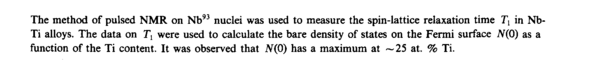 The method of pulsed NMR on Nb93 nuclei was used to measure the spin-lattice relaxation time Γι in Nb-Ti alloys. The data on 7\ were used to calculate the bare density of states on the Fermi surface N(0) as a function of the Ti content. It was observed that iV(0) has a maximum at ~25 at. % Ti.