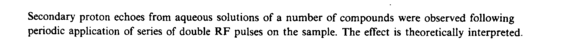 Secondary proton echoes from aqueous solutions of a number of compounds were observed following periodic application of series of double RF pulses on the sample. The effect is theoretically interpreted.
