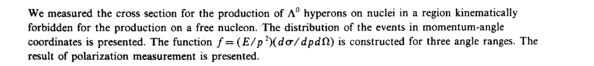 We measured the cross section for the production of Λ0 hyperons on nuclei in a region kinematically forbidden for the production on a free nucleon. The distribution of the events in momentum-angle coordinates is presented. The function f = (Е/p2)(dcr/dpdfl) is constructed for three angle ranges. The result of polarization measurement is presented.