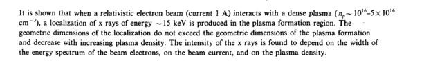 It is shown that when a relativistic electron beam (current 1 A) interacts with a dense plasma (np~ 1016-5xl016 cm-3), a localization of χ rays of energy ~ 15 keV is produced in the plasma formation region. The geometric dimensions of the localization do not exceed the geometric dimensions of the plasma formation and decrease with increasing plasma density. The intensity of the χ rays is found to depend on the width of the energy spectrum of the beam electrons, on the beam current, and on the plasma density.