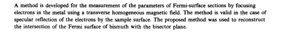 A method is developed for the measurement of the parameters of Fermi-surface sections by focusing electrons in the metal using a transverse homogeneous magnetic field. The method is valid in the case of specular reflection of the electrons by the sample surface. The proposed method was used to reconstruct the intersection of the Fermi surface of bismuth with the bisector plane.