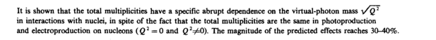 It is shown that the total multiplicities have a specific abrupt dependence on the virtual-photon mass in interactions with nuclei, in spite of the fact that the total multiplicities are the same in photoproduction and electroproduction on nucleons (Q2 = 0 and Q2^0). The magnitude of the predicted effects reaches 30-40%.