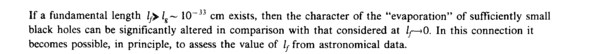 If a fundamental length lf> /g~ 10~33 cm exists, then the character of the "evaporation" of sufficiently small black holes can be significantly altered in comparison with that considered at if-»0. In this connection it becomes possible, in principle, to assess the value of lf from astronomical data.
