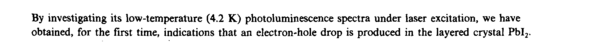 By investigating its low-temperature (4.2 K) photoluminescence spectra under laser excitation, we have obtained, for the first time, indications that an electron-hole drop is produced in the layered crystal Pbl2.
