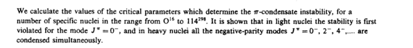 We calculate the values of the critical parameters which determine the тг-condensate instability, for a number of specific nuclei in the range from O16 to 1 14298. It is shown that in light nuclei the stability is first violated for the mode Jv ~0~, and in heavy nuclei all the negative-parity modes J" = 0", 2~, 4~,.... are condensed simultaneously.