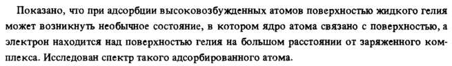 Показано, что при адсорбции высоковозбужденных атомов поверхностью жидкого гелия может возникнуть необычное состояние, в котором ядро атома связано с поверхностью, а электрон находится над поверхностью гелия на большом расстоянии от заряженного комплекса. Исследован спектр такого адсорбированного атома.