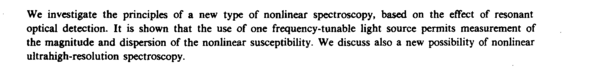 We investigate the principles of a new type of nonlinear spectroscopy, based on the effect of resonant optical detection. It is shown that the use of one frequency-tunable light source permits measurement of the magnitude and dispersion of the nonlinear susceptibility. We discuss also a new possibility of nonlinear ultrahigh-resolution spectroscopy.