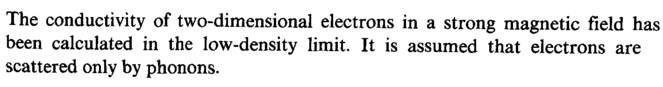 The conductivity of two-dimensional electrons in a strong magnetic field has been calculated in the low-density limit. It is assumed that electrons are scattered only by phonons.
