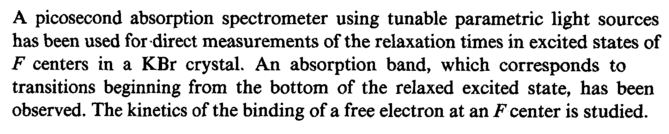 A picosecond absorption spectrometer using tunable parametric light sources has been used for direct measurements of the relaxation times in excited states of F centers in a KBr crystal. An absorption band, which corresponds to transitions beginning from the bottom of the relaxed excited state, has been observed. The kinetics of the binding of a free electron at an F center is studied.