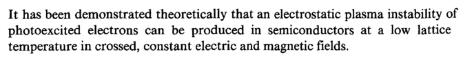 It has been demonstrated theoretically that an electrostatic plasma instability of photoexcited electrons can be produced in semiconductors at a low lattice temperature in crossed, constant electric and magnetic fields.