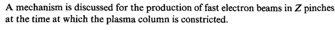 A mechanism is discussed for the production of fast electron beams in Ζ pinches at the time at which the plasma column is constricted.