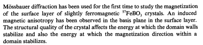 Mossbauer diffraction has been used for the first time to study the magnetization of the surface layer of slightly ferromagnetic 57FeB03 crystals. An induced magnetic anisotropy has been observed in the basis plane in the surface layer. The structural quality of the crystal affects the energy at which the domain walls stabilize and also the energy at which the magnetization direction within a domain stabilizes.