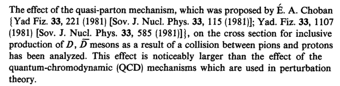 The effect of the quasi-parton mechanism, which was proposed by E. A. Choban {Yad Fiz. 33, 221 (1981) [Sov. J. Nucl Phys. 33, 115 (1981)]; Yad. Fiz. 33, 1107 (1981) [Sov. J. Nucl. Phys. 33, 585 (1981)]}, on the cross section for inclusive production of D, D mesons as a result of a collision between pions and protons has been analyzed. This effect is noticeably larger than the effect of the quantum-chromodynamic (QCD) mechanisms which are used in perturbation theory.