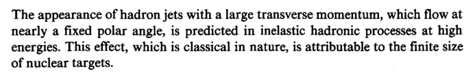 The appearance of hadron jets with a large transverse momentum, which flow at nearly a fixed polar angle, is predicted in inelastic hadronic processes at high energies. This effect, which is classical in nature, is attributable to the finite size of nuclear targets.