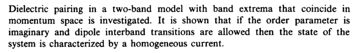Dielectric pairing in a two-band model with band extrema that coincide in momentum space is investigated. It is shown that if the order parameter is imaginary and dipole interband transitions are allowed then the state of the system is characterized by a homogeneous current.