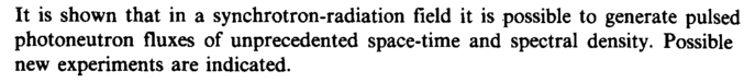It is shown that in a synchrotron-radiation field it is possible to generate pulsed photoneutron fluxes of unprecedented space-time and spectral density. Possible new experiments are indicated.