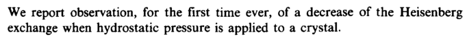 We report observation, for the first time ever, of a decrease of the Heisenberg exchange when hydrostatic pressure is applied to a crystal.