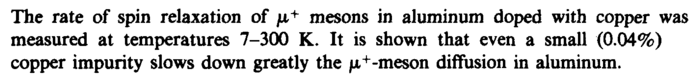The rate of spin relaxation of μ+ mesons in aluminum doped with copper was measured at temperatures 7-300 K. It is shown that even a small (0.04%) copper impurity slows down greatly the μ+-ηιβ8θη diffusion in aluminum.
