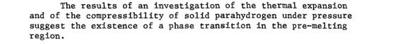 The results of an investigation of the thermal expansion and of the compressibility of solid parahydrogen under pressure suggest the existence of a phase transition in the pre-melting region.
