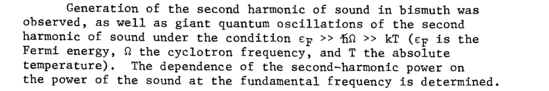 Generation of the second harmonic of sound in bismuth was observed, as well as giant quantum oscillations of the second harmonic of sound under the condition eF >> -ηΩ >> kT (ер is the Fermi energy, Ω the cyclotron frequency, and Τ the absolute temperature). The dependence of the second-harmonic power on the power of the sound at the fundamental frequency is determined.