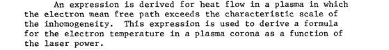 An expression is derived for heat flow in a plasma in which the electron mean free path exceeds the characteristic scale of the inhomogeneity. This expression is used to derive a formula for the electron temperature in a plasma corona as a function of the laser power.