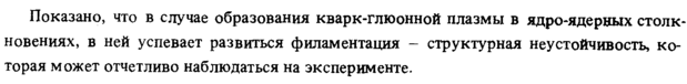 Показано, что в случае образования кварк-глюонной плазмы в ядро-ядерных столкновениях, в ней успевает развиться филаментация структурная неустойчивость, которая может отчетливо наблюдаться на эксперименте.
