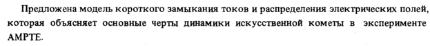 Влияние эффекта "короткого замыкания" на динамику искусственной кометы (эксперимент АМРТЕ)