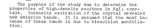 The purpose of the study was to determine the properties of high-density excitons in Hgl?_ crystals. Intensity excitation of the crystal revealed new emission bands. It is assumed that the most intense of these bands is due to biexcition annihilation .